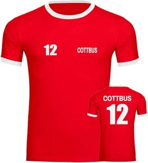 Kontrast T-Shirt - Cottbus - Trikot Nummer 12 - Druck weiß - Männer Größe L rot/weiß
