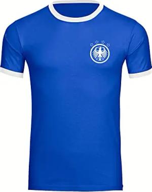 Kontrast T-Shirt - Deutschland - Adler Retro - Druck weiß - Männer Größe XL blau/weiß