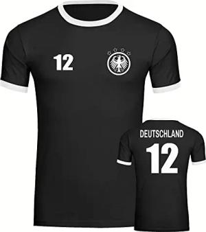 Kontrast T-Shirt - Deutschland - Adler Retro Trikot 12 - Druck weiß - Männer Größe S schwarz/weiß