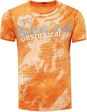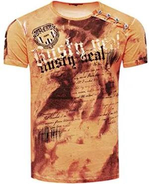 Herren T-Shirt Front Print Verwaschen mit Knopfleiste 156, Farbe:Orange, Größe S-3XL:M