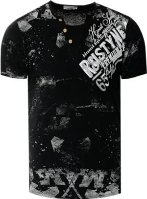 T-Shirt Rundhals Doppelte Knopfleiste mit Großem Front-Print Verwaschen in Used-Look 273, Farbe:Schwarz, Größe S-3XL:L