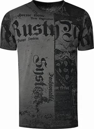 T-Shirt Herren Verwaschen Plakativer Print Rundhals mit Knopfleiste Skull S M L XL XXL 3XL 262, Farbe:Anthrazit, Größe S-3XL:S