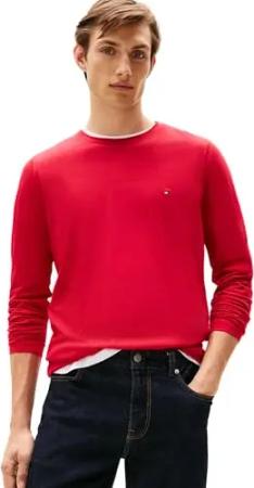 Herren Langarmshirt Stretch Slim Fit Baumwolle, Mehrfarbig (Medium Red), L