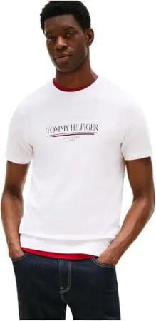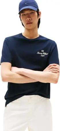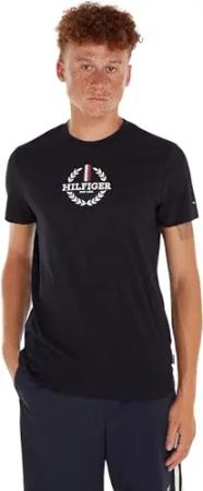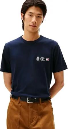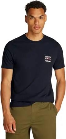 Herren Hilfiger Center Stack Tee MW0MW38621 S/S T-Shirt, Blau, M, Blau (Keilblau), M
