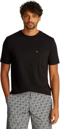 Herren T-Shirt Kurzarm Essential mit Brusttasche, Schwarz (Black), XL