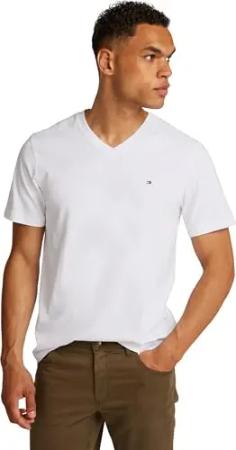 Herren T-Shirt Kurzarm Essential Tee mit V-Ausschnitt, Weiß (White), S