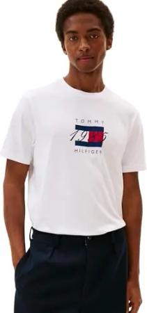 Herren T-Shirt Kurzarm Linear Flag Graphic Regular Fit, Weiß (White), S