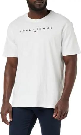 Tommy Jeans Herren T-Shirt Kurzarm Regular Linear Logo Tee Rundhalsausschnitt, Weiß (White), XS