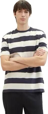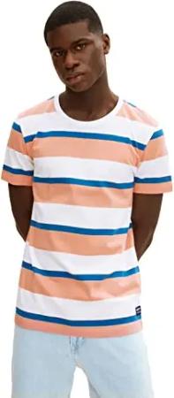 Herren T-Shirt mit Blockstreifen 1031136, 29647 - Rose Petrol White Stripe, S