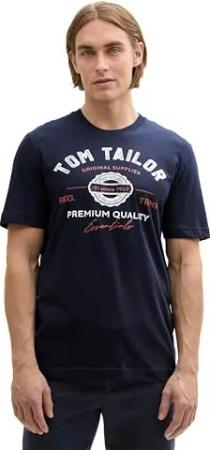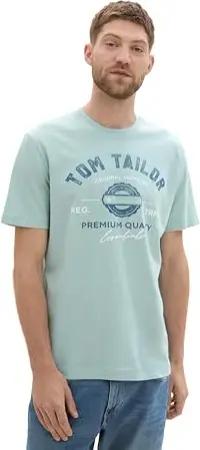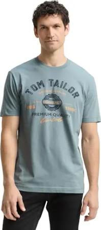 Herren Basic T-Shirt mit Print aus Baumwolle, Greyish Mid Blue, S