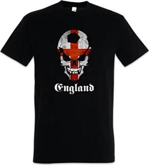Black Classic Football Soccer England Skull Flag Herren T-Shirt Schwarz Größe 2XL