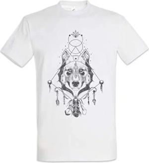 Indian Wolf & Feathers Herren T-Shirt Weiß Größe M