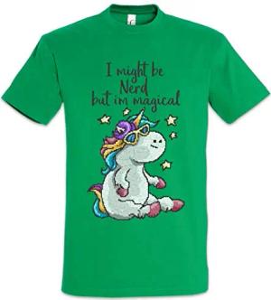 Nerd Unicorn Herren T-Shirt Grün Größe XL