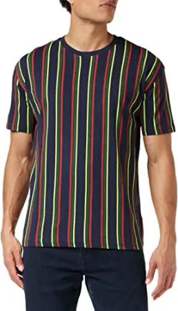 Herren Printed Oversized Retro Stripe Tee T-Shirt, midnightnavy/burnedred, M