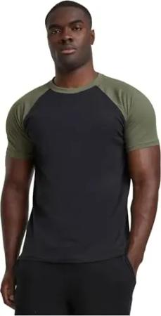Herren Raglan Contrast Tee – Kurzarm T-Shirt aus Baumwolle mit farblich abgesetzten Ärmeln im sportlichen Raglan Stil für Freizeit & Streetwear,Blk/Olive,M