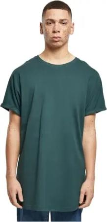 Herren T-Shirt Long Shaped Turnup Tee, lässiges T-Shirt für Männer, in langem Schnitt, erhältlich in vielen Farben, Bottlegreen, L