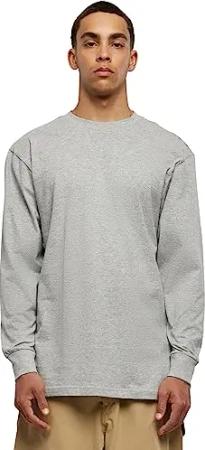 Herren Tall Tee L/S – Langärmeliges Oversize T-Shirt aus Baumwolle, lockerer Schnitt mit verlängertem Fit im urbanen Streetwear Look,Grau,L Große Größen