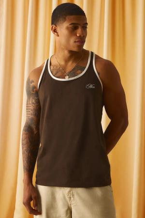 Besticktes Ringer Racer-vesttop - Braun - S, Braun