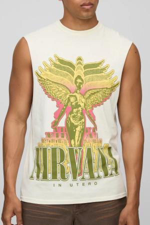 Ecru vesttop mit Nirvana-Print - S, Ecru