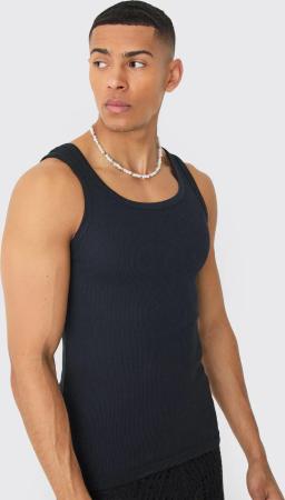 Tall geripptes Basic vesttop - Schwarz - S, Schwarz