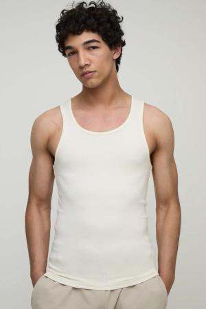 Geripptes Basic Muscle-Fit vesttop - Ecru - S, Ecru