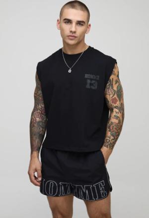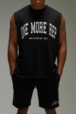 Man Active Oversize vesttop mit One More Rep Print & Shorts - Schwarz - S, Schwarz