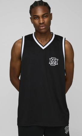 Oversize Mesh Basketball-vesttop mit V-Ausschnitt - Schwarz - M, Schwarz
