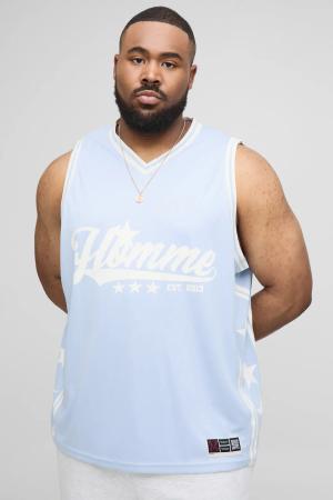 Plus Airtex vesttop mit Homme Stern Print - Blau - 2XL, Blau