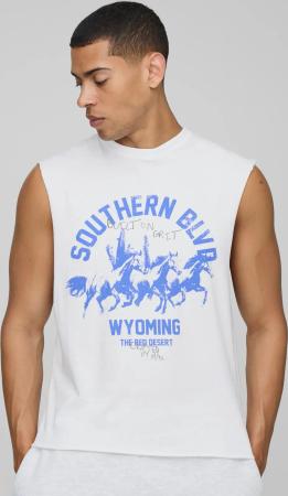 Weißes kastiges Oversize vesttop mit Western Bronx Print - M, Weiß