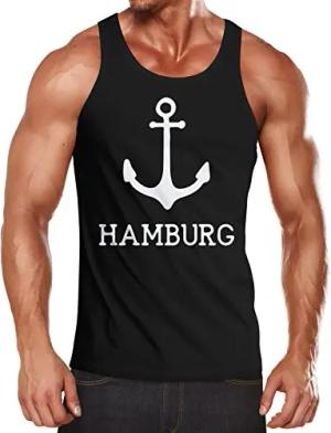 Herren Tank-Top mit Anker Aufdruck Hamburg schwarz M