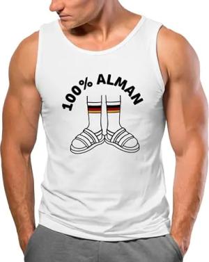 Herren Tanktop 100 Prozent Alman Meme Witz Deutscher Deutschland Parodie Satire Achselshirt Weiss L