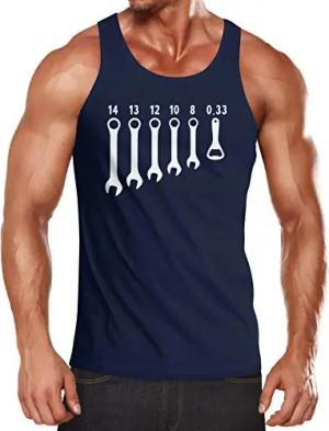 Herren Tanktop Bieröffner Flaschenöffner Männerwerkzeug Muskelshirt Achselshirt Navy L