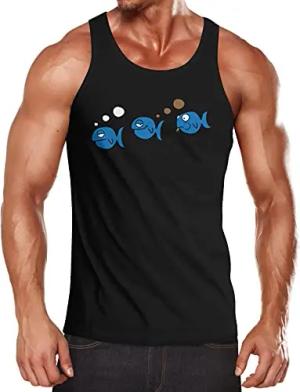 Herren Tanktop Fische lustig Fischfurz Fun-Shirt furzen Witz Scherz Meme Muscle Shirt Achselshirt schwarz XXL