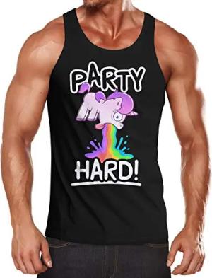Herren Tanktop Party Hard kotzendes Einhorn Feiern Saufen Fun-Shirt Spruch lustig Muscle Shirt Achselshirt schwarz M