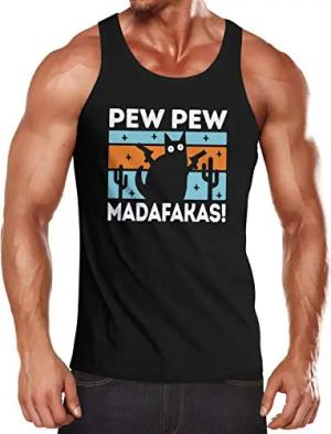 Herren Tanktop Pew Pew Madafakas! Schwarze Katze Spruch Meme lustig Muscle Shirt Achselshirt schwarz XXL