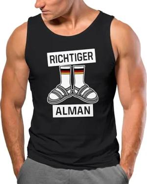 Herren Tanktop Richtiger Alman Meme Witz Deutscher Deutschland Parodie Satire Achselshirt schwarz M