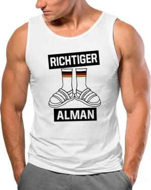 Herren Tanktop Richtiger Alman Meme Witz Deutscher Deutschland Parodie Satire Achselshirt Weiss L