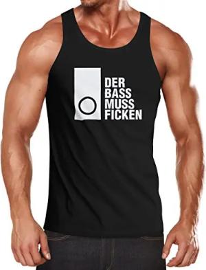 Herren Tanktop Techno Spruch - Der Bass muss Ficken - Party Festival Rave Muskelshirt Muscle Shirt schwarz S