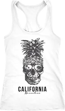 Cooles Damen Tank-Top Pineapple Skull Sonnenbrille Ananas Totenkopf Slim Fit Weiss XL
