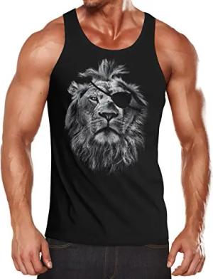 Cooles Herren Tank-Top mit großem Löwen Aufdruck Lion Eye Patch Schwarz XL