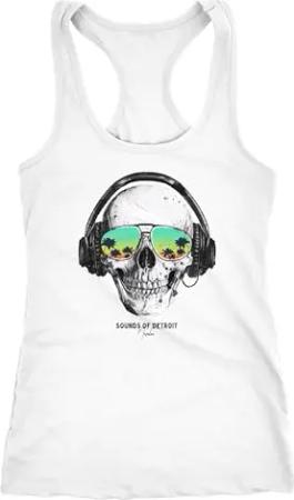 Damen Tank-Top Totenkopf Skull Sonnenbrille Schädel Sounds of Detroit Music Racerback weiß S