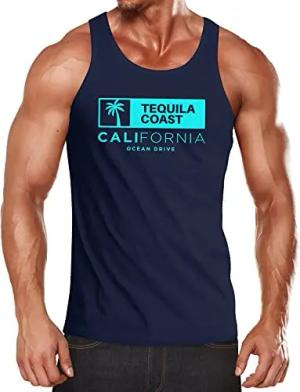 Herren Tank-Top California Los Angeles Surfing Motiv Sommer Fashion USA Streetstyle Print Aufdruck Muskelshirt Navy-blau M
