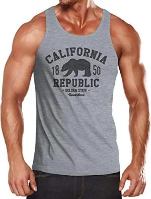 Herren Tank-Top California Republic Kalifornien Golden State Grizzly Bär Bear Logo Muskelshirt Muscle Shirt grau M