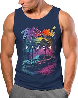 Herren Tank-Top Miami Beach USA Oldtimer Car Palmen Print Fashion Streetstyle Muskelshirt Muscle Shirt Navy S