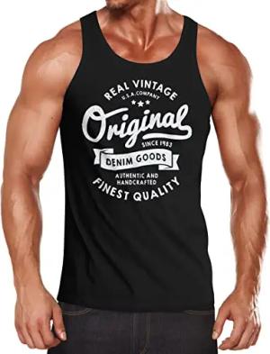 Herren Tank-Top Original Denim Goods Vintage Druck Muskelshirt Muscle Shirt schwarz XXL