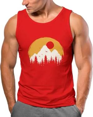 Herren Tank-Top Outdoor Print Natural Badge Logo Wandern Fashion Sommer Muskelshirt rot XXL