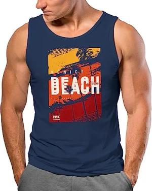 Herren Tank-Top Sommer Venice Beach Surfing Motiv Aufdruck Strand Palmen Fashion Muskelshirt Navy XXL