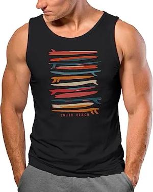 Herren Tank-Top Surfboards South Beach California USA Sommer Surfing Motiv Fashion Muskelshirt schwarz-rot 3XL