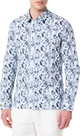 Herren C-Axel ML Klassisches Hemd, Weiß/Blumenmuster, S