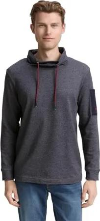 Herren 1047814 Snood Langarmshirt aus Baumwolle, 38817-Navy Grey Grindle Structure, 3XL